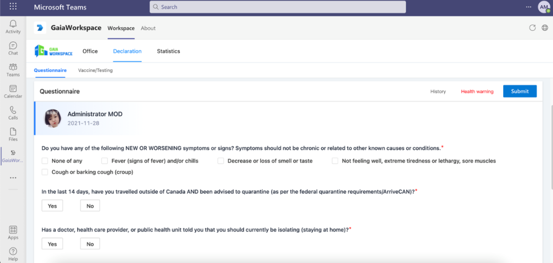 每一位进出大楼的员工和来访者都需要填写健康上报问卷,包括体温,是否有咳嗽、发烧等相关症状。如果填写内容超出设定的阀值,比如体温达到了38度,系统就会提醒该人员不能进入大楼。同时,也会发送通知给大楼的管理员,采取相应的隔离措施。