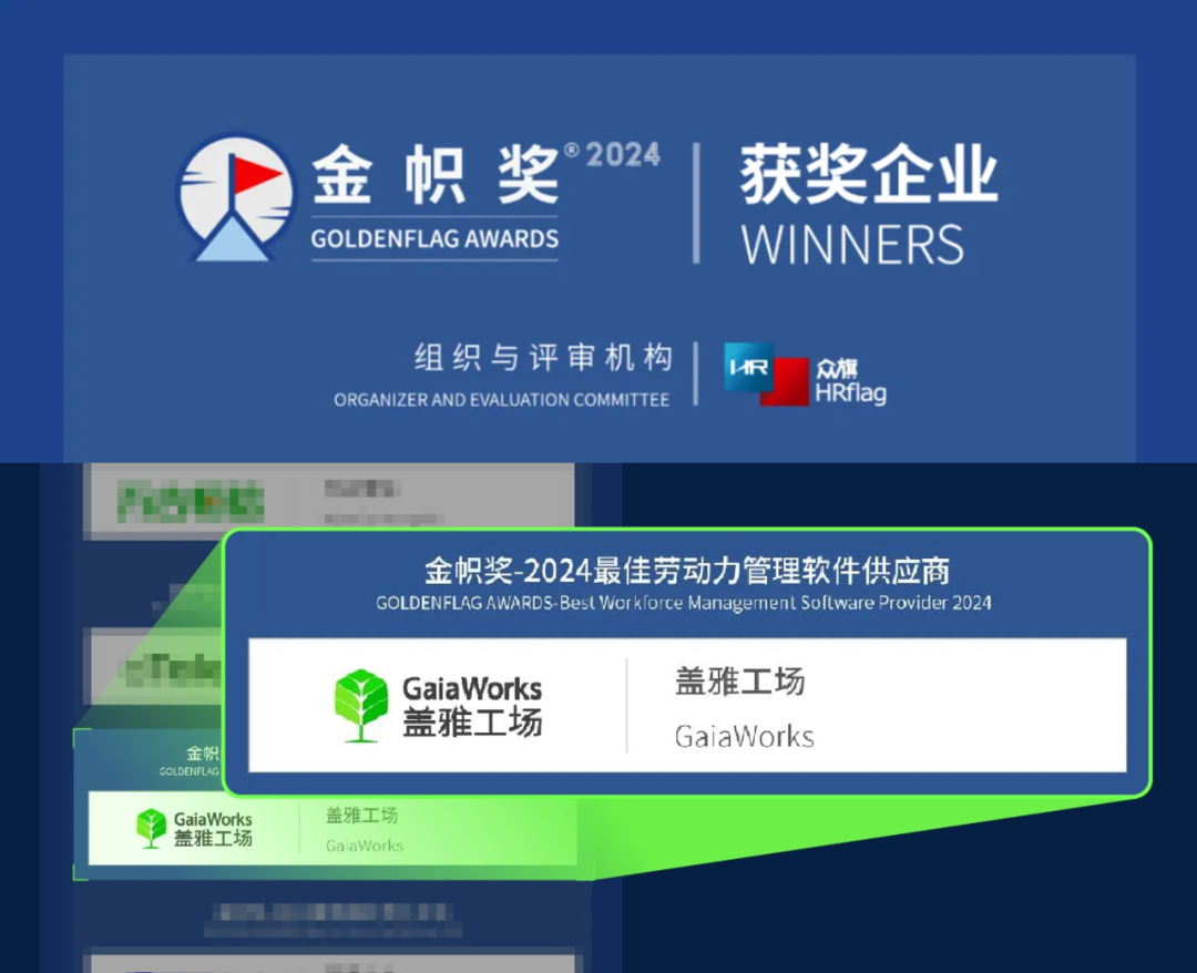 2024年8月26日,由中国人力资源管理智库HRflag组织与评审的人力资源服务供应商旗帜大奖“金帜奖”(GoldenFLAG® AWARDS)颁奖典礼隆重举办。盖雅工场凭借多年在产品方案上的成绩和增长速度、专业的服务品质、优质的品牌口碑以及在人力资源技术服务领域的优势地位,再度荣膺最佳劳动力管理软件供应商奖项。